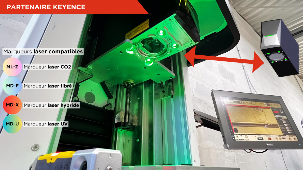 La station de gravure laser est compatible avec toute la gamme de laser Keyence :